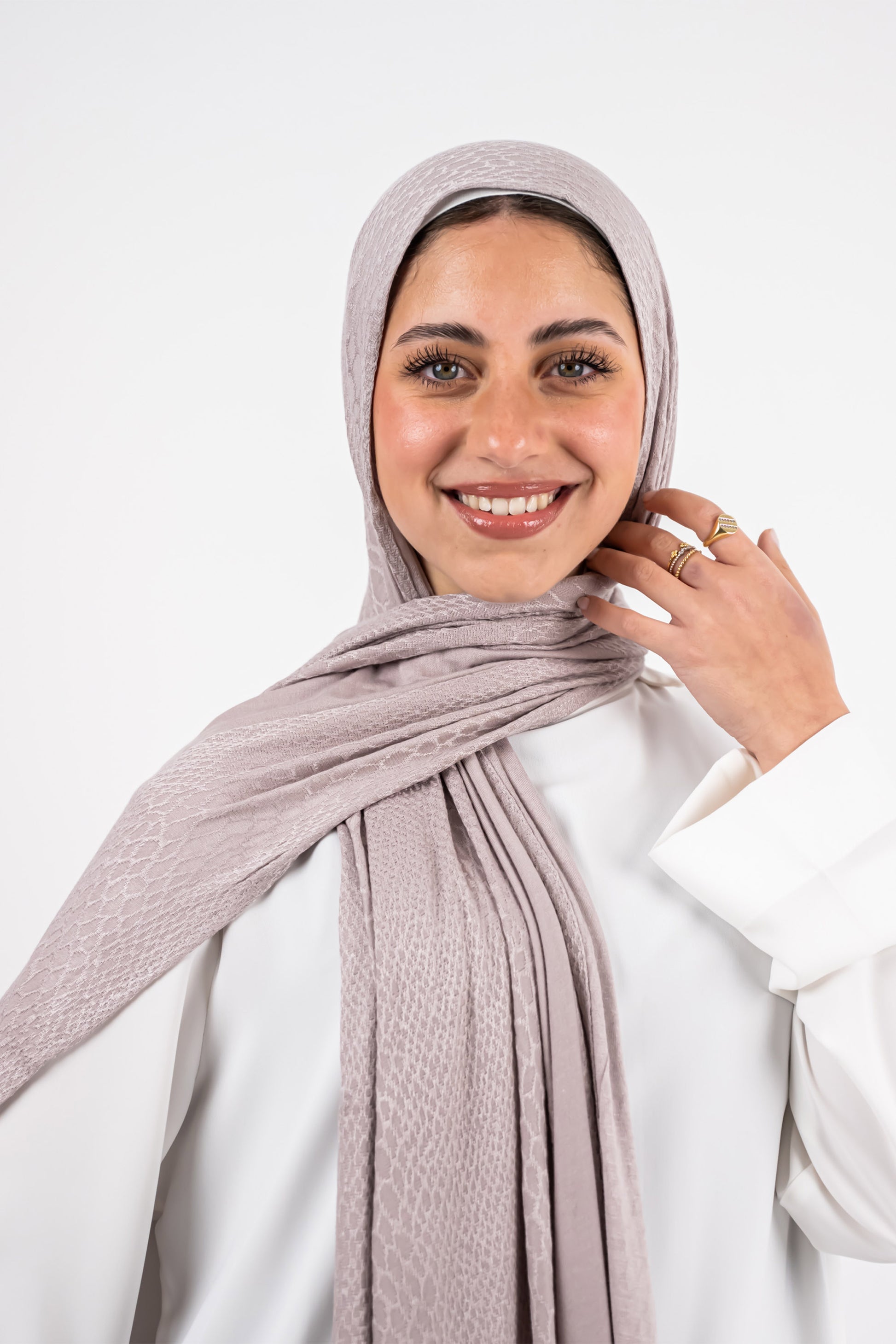 It offers the same lightweight, matte finish and non-slip hold Kuwaiti fabric is known for — now with a unique pattern that elevates even your simplest outfit. Ideal for neutral styling, workwear, and timeless layering.